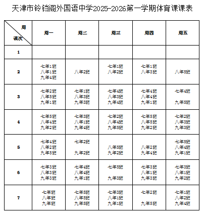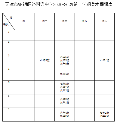 天津市铃铛阁外国语中学2025-2026学年度第一学期音体美劳课表公示