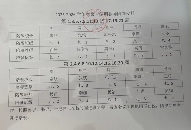 2025-2026(一)天津市铃铛阁外国语中学学生食品安全信息公示(陪餐安排表 清真餐合同更新)