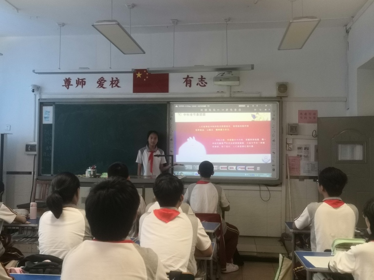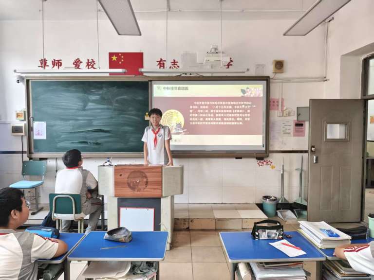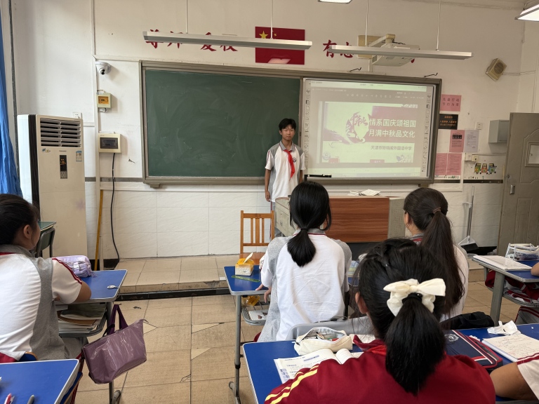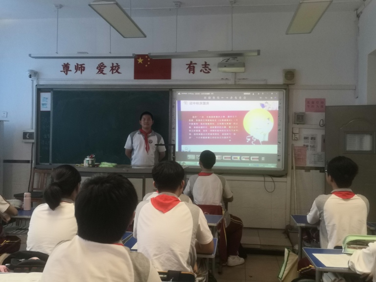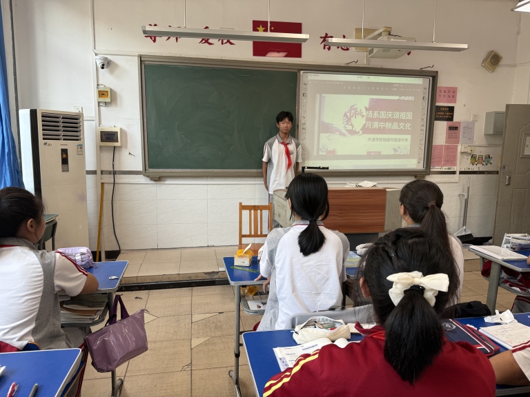 各班围绕“情系国庆颂祖国 月满中秋品文化”主题开展特色班会,将国庆的家国情怀与中秋的传统文化深度融合。班会通过丰富多样的形式打造沉浸式体验:播放国庆主题纪录片,带领学生感受祖国发展成就,抒发“颂祖国”的赤诚之心;讲述中秋起源与传统习俗,组织学生分享传统文化、吟诵中秋诗词,在团圆氛围中品味“文化”的独特魅力。