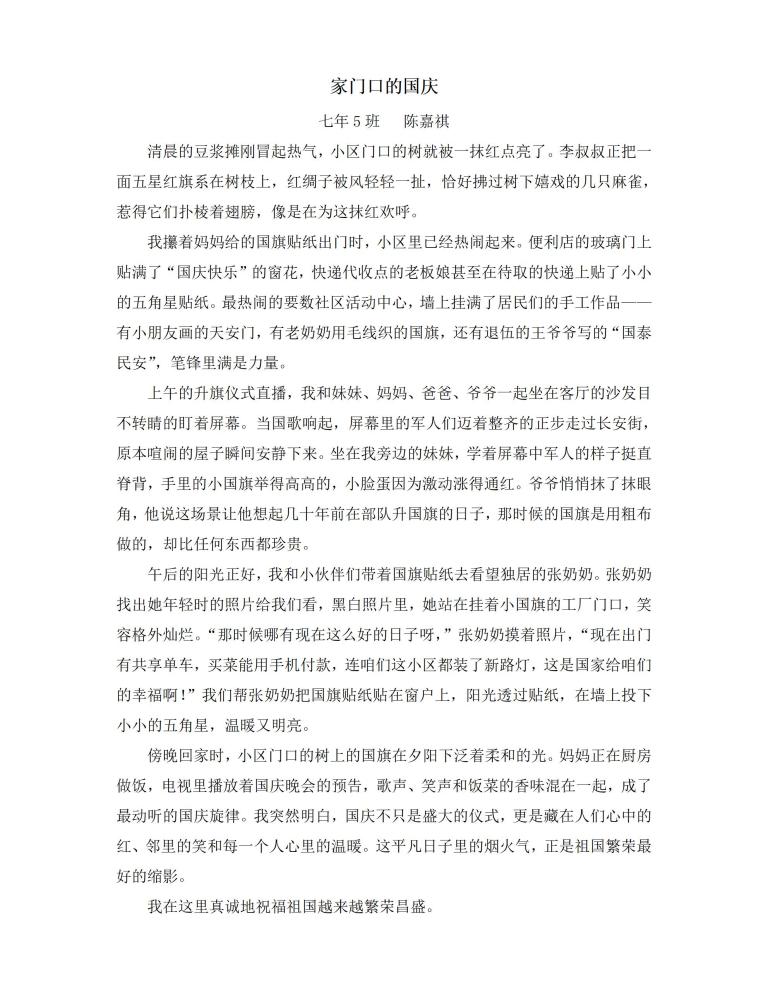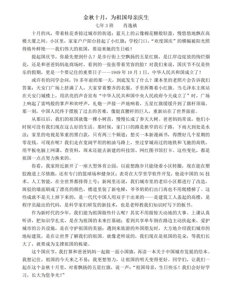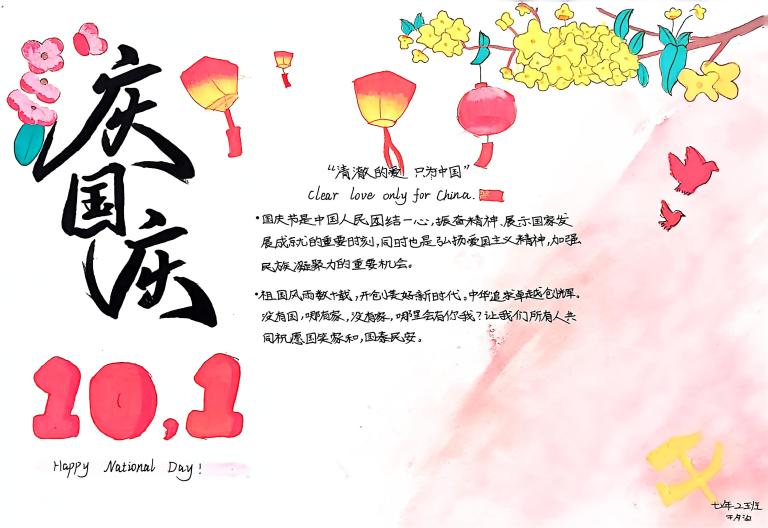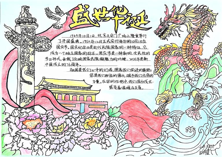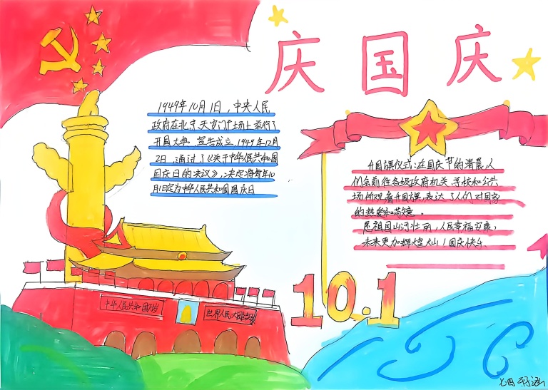 此外,学校还举办了手抄报、硬笔书法、征文作品征集活动。学生们以“祖国在我心中”为核心,用文字书写对祖国的热爱与祝福,用画笔描绘祖国大好河山与时代风貌,用笔墨展现中华优秀传统文化的魅力。