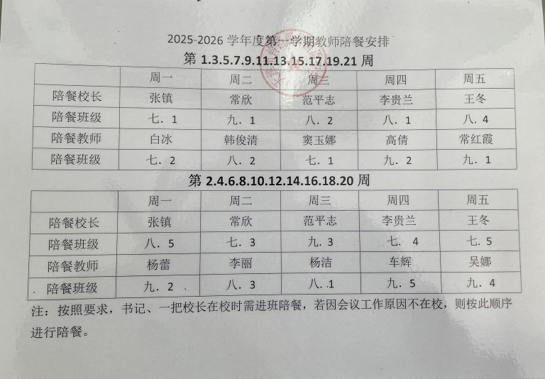 2025-2026(一)天津市铃铛阁外国语中学学生食品安全信息公示(陪餐安排表 健康证更新)