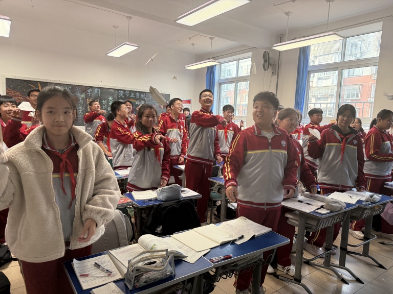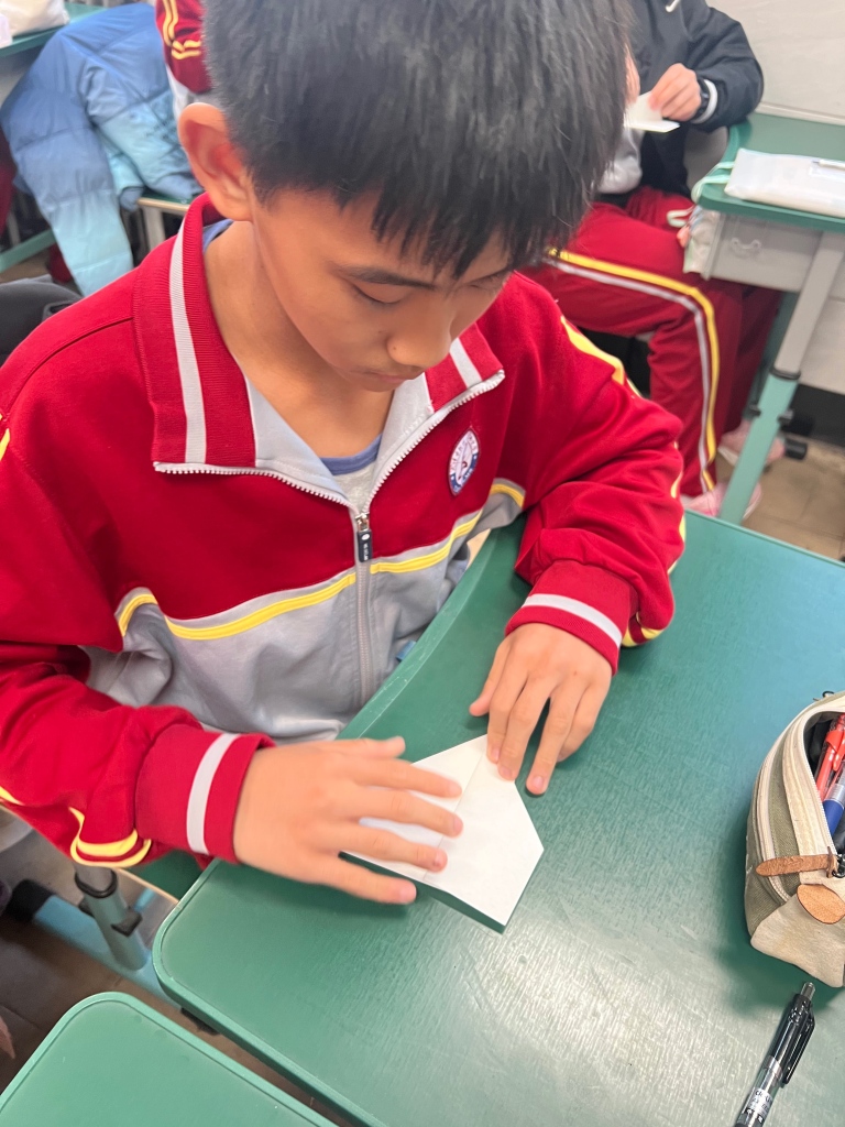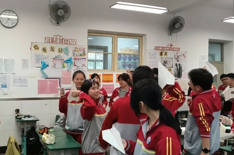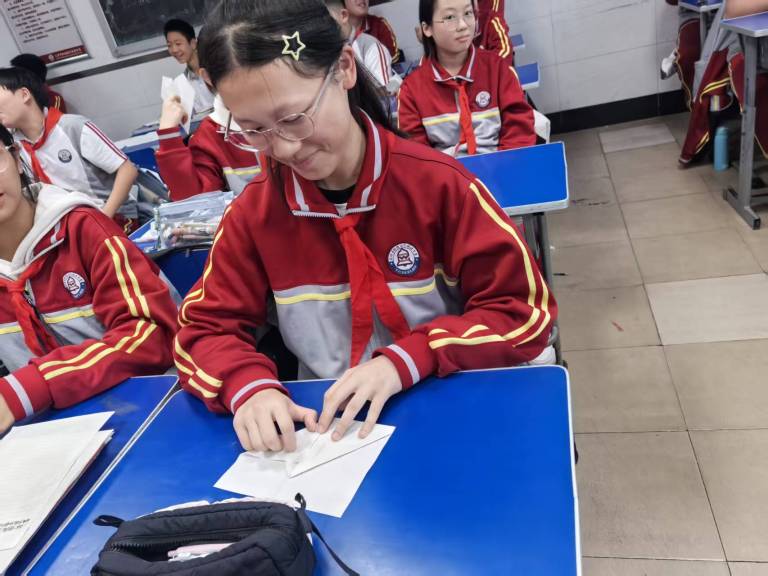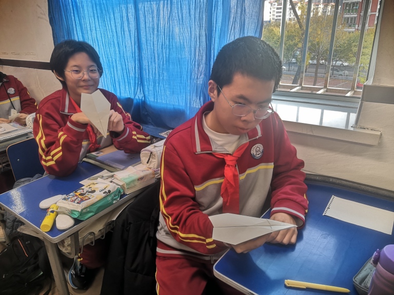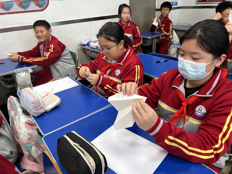紧接着,同学们将这张承载心事的纸,亲手折叠成一架架独一无二的纸飞机。