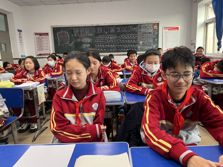 活动的最后,在心理老师专业的冥想引导语中,同学们闭上眼睛,想象自己驾驶着轻盈的飞机,翱翔于雨过天晴的广阔蓝天,让内心回归澄澈与笃定。