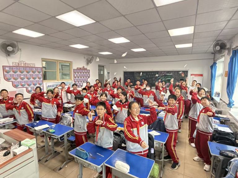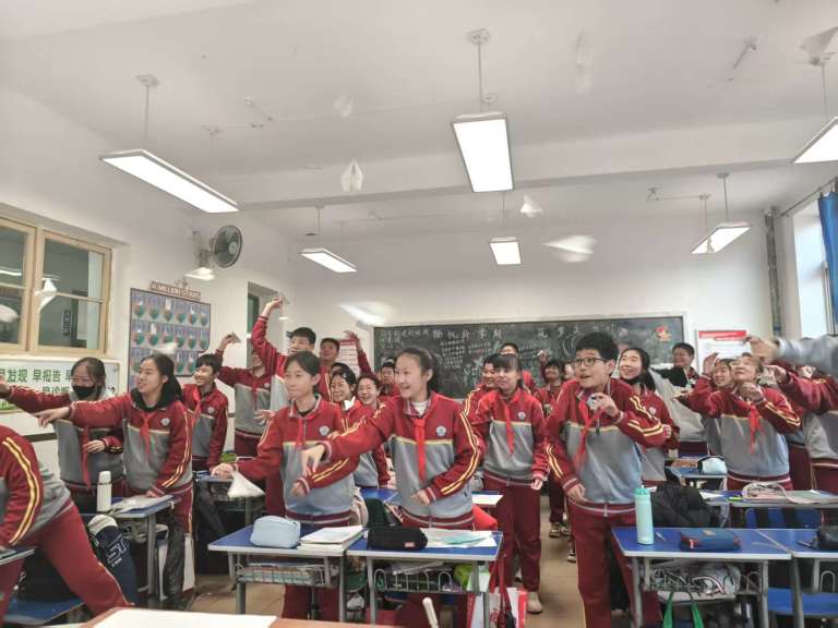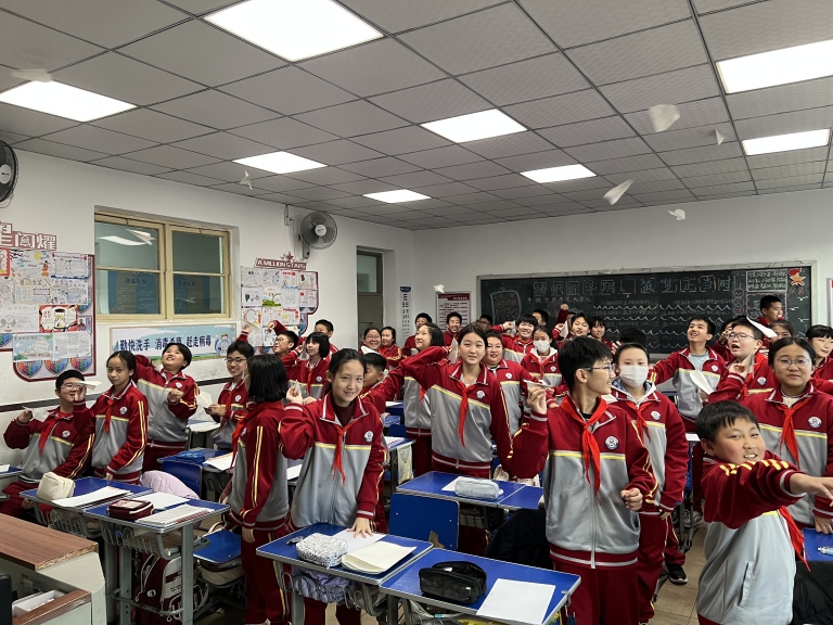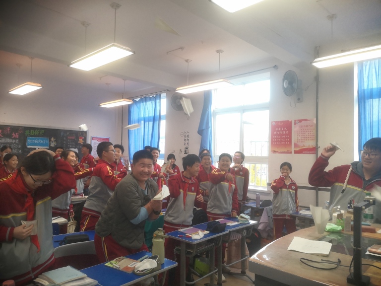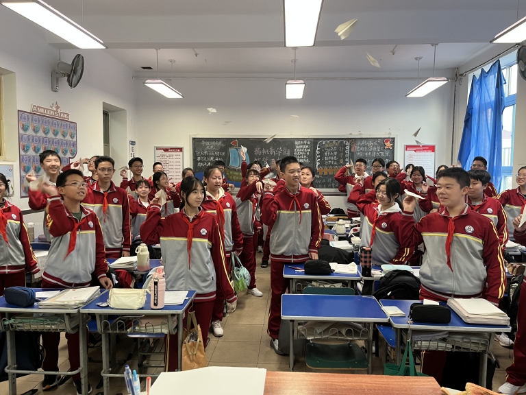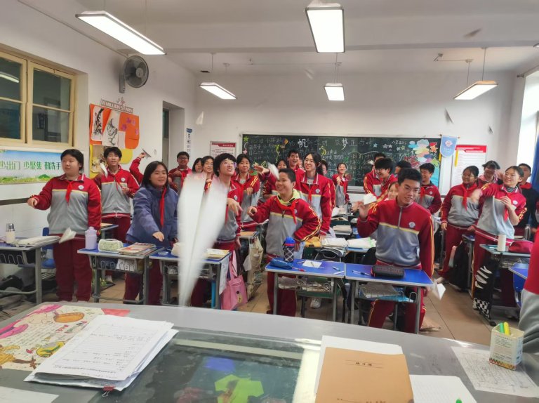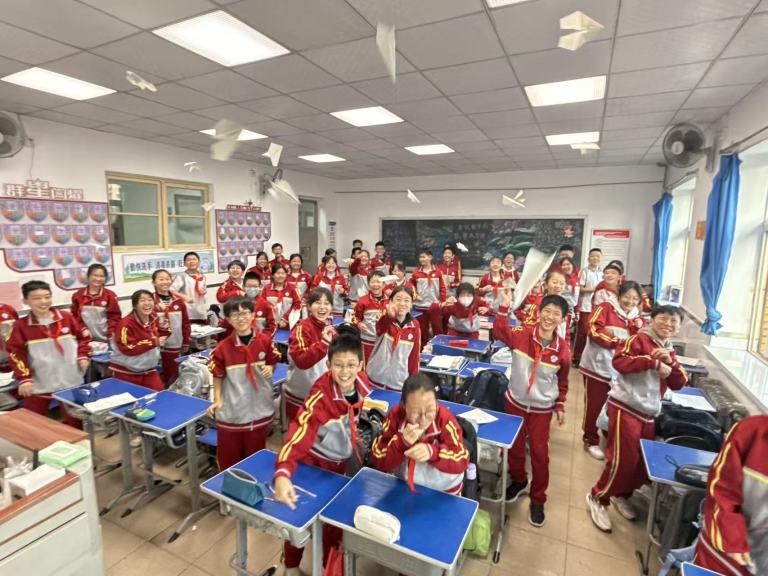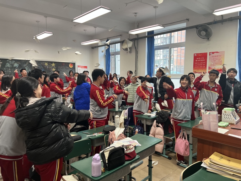 这一刻,欢呼声与笑声在每个班级回荡,象征性的放飞行为,给予了学生们一个情绪宣泄的出口。