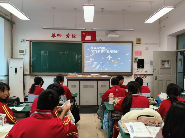为帮助学生正确看待测验结果,有效释放心理压力,以更积极的心态迎接下一阶段的学习生活,近日,我校举办了一场以“人生的航行,不止一次飞翔”为主题的大型团体心理减压活动。活动通过校园广播系统统一引导,十五个班级同步参与,上演了一场充满仪式感与温暖的沉浸式心灵治愈之旅。