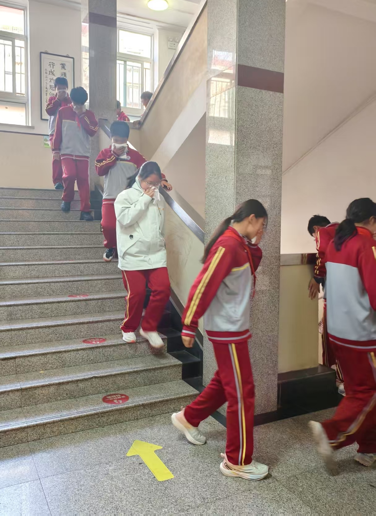演练过程中,老师们在各楼层各个疏导位点上组织到位,保障有力,确保了本次演练进行的有条不紊。学生们都能够听从指挥,积极参与,认真配合,疏散有序,以较快的速度按照预定路线撤离到楼外指定安全区域。