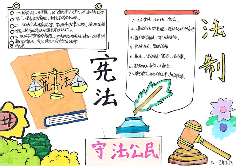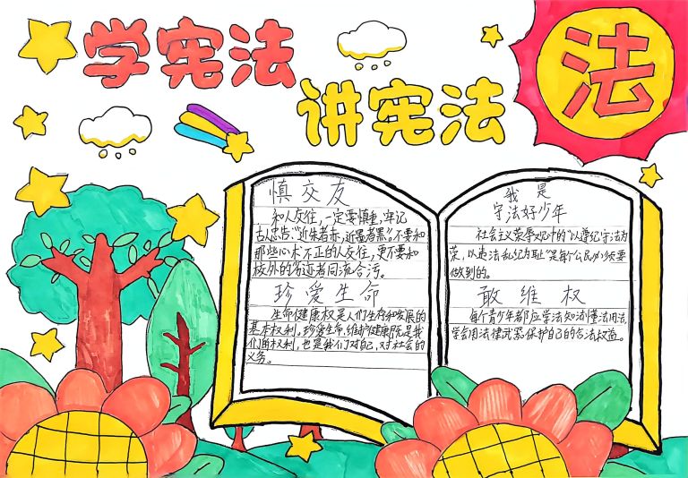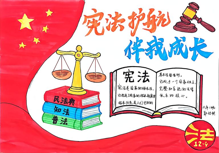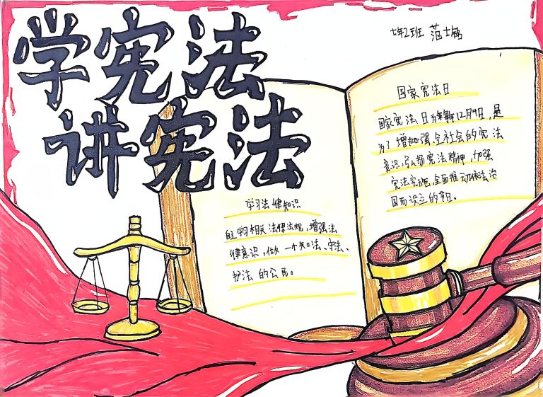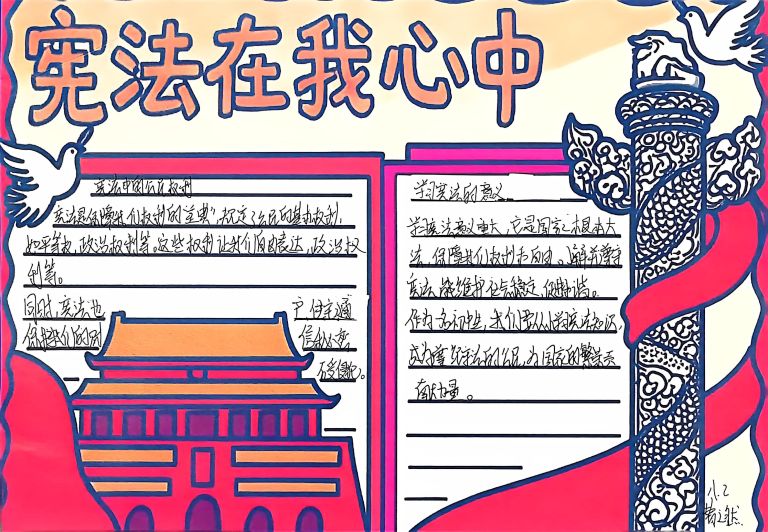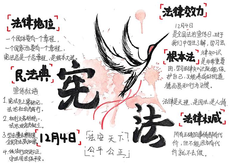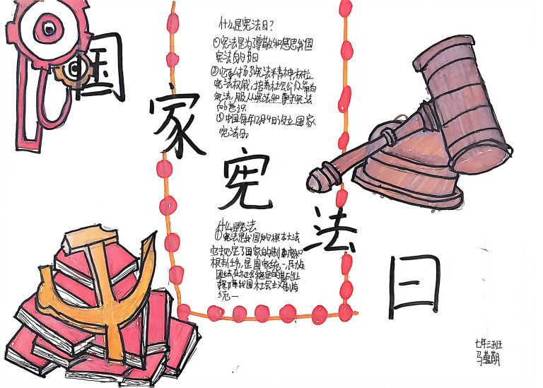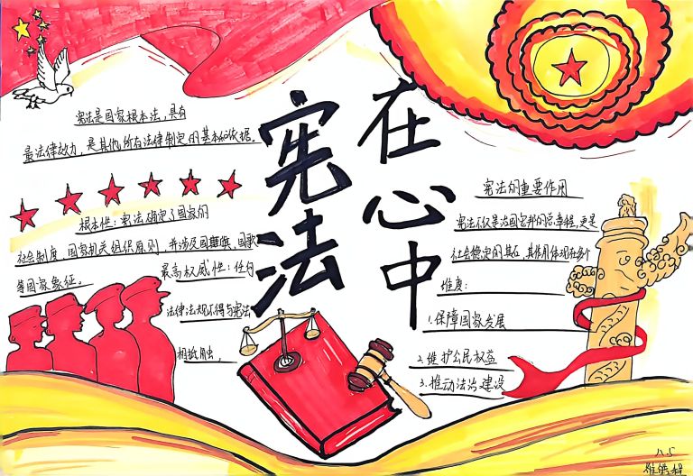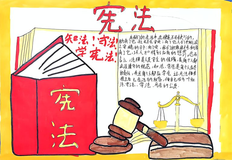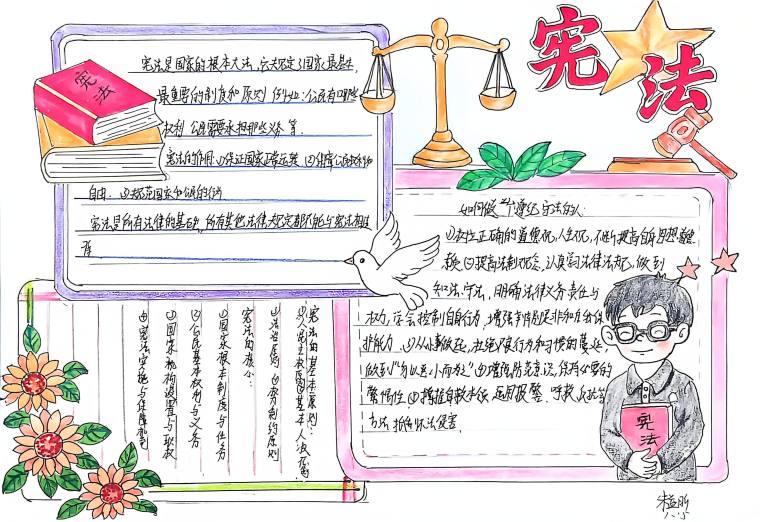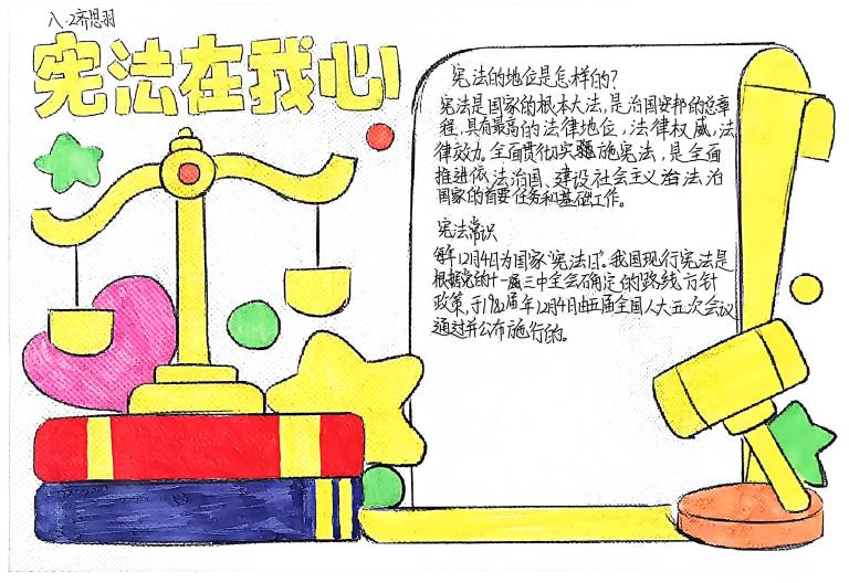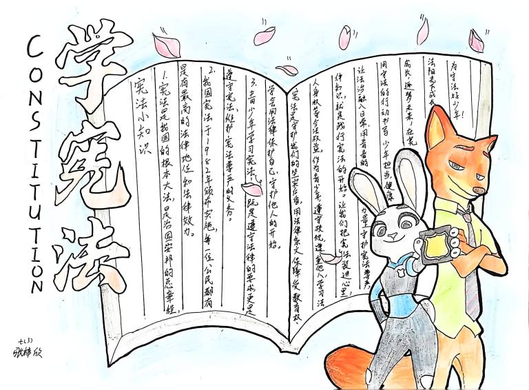 我校开展宪法主题手抄报征集活动,作品涵盖宪法知识、法治案例等内容,图文并茂、创意十足。