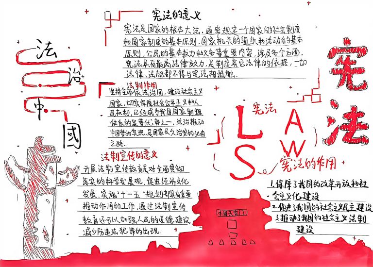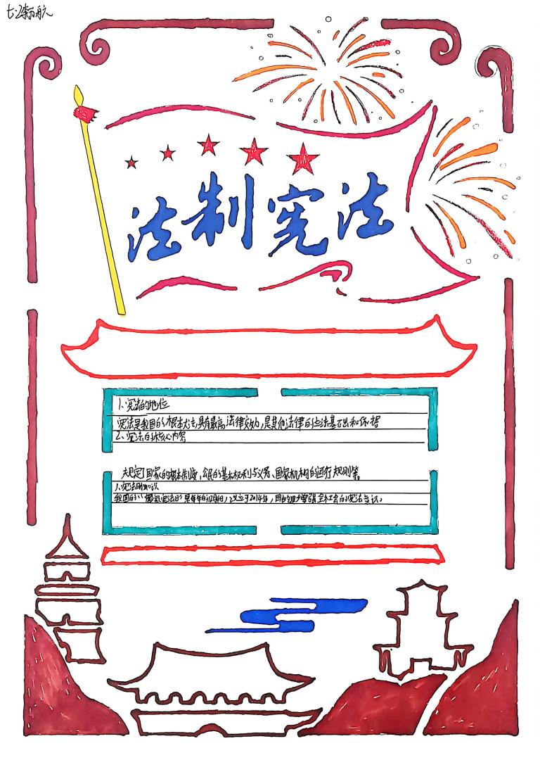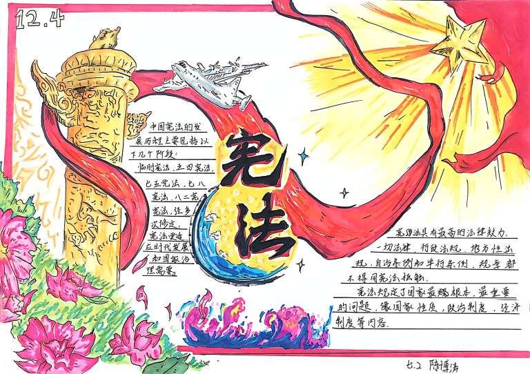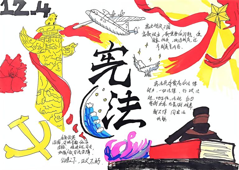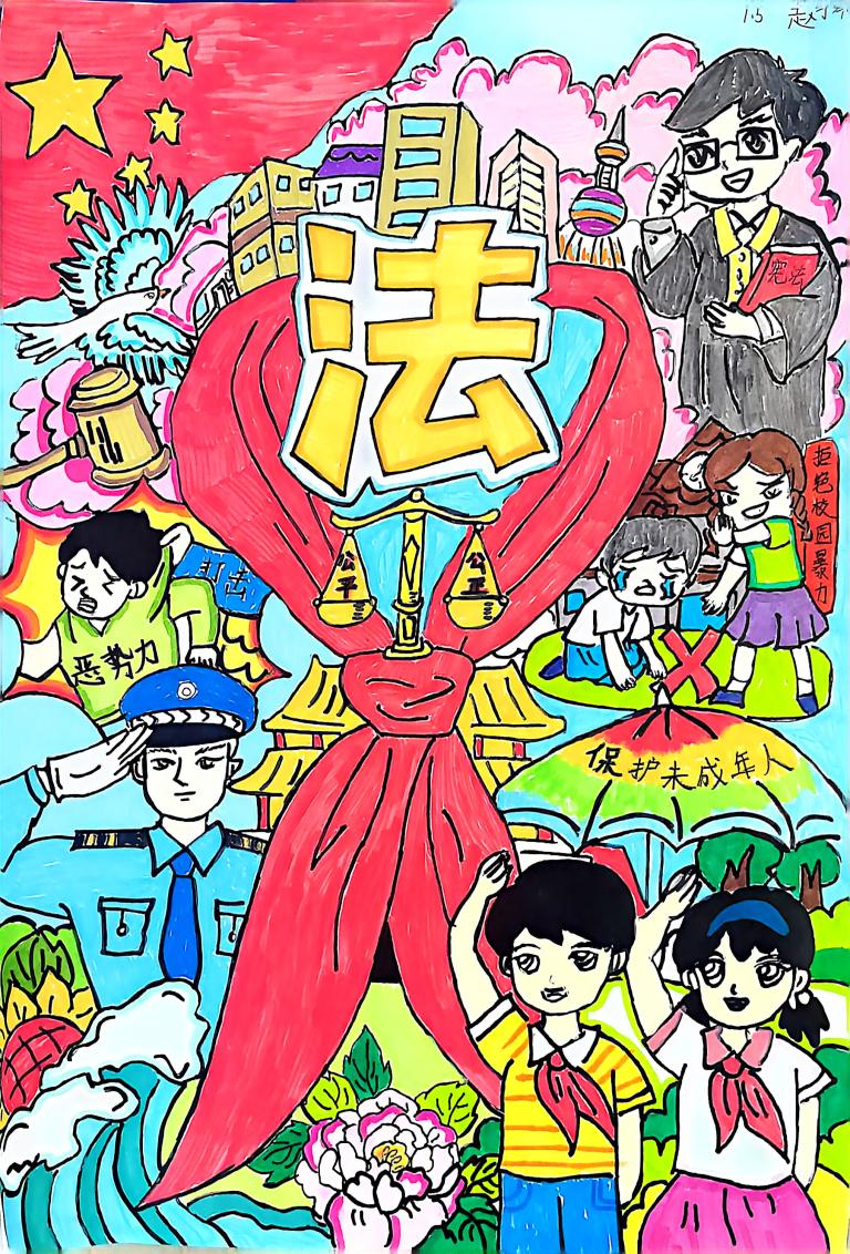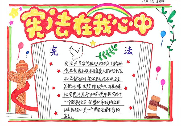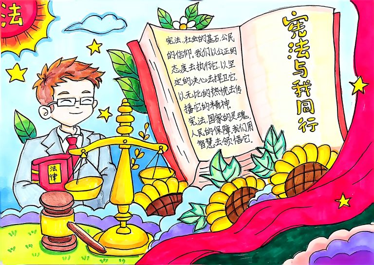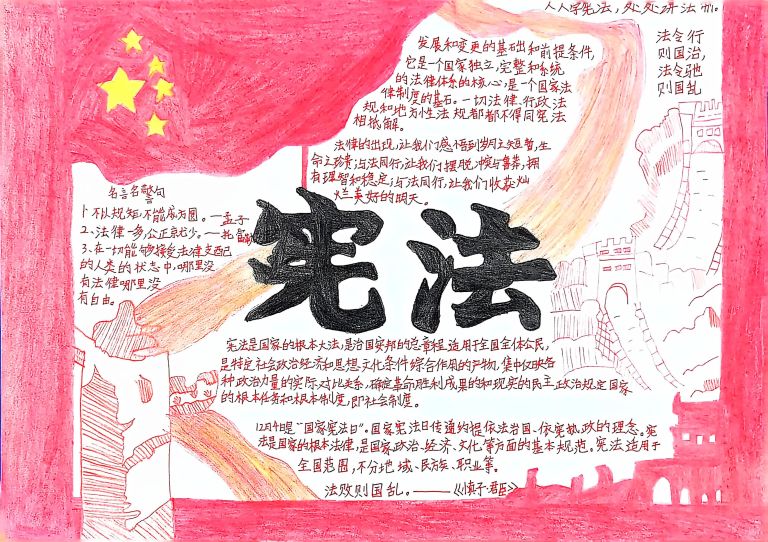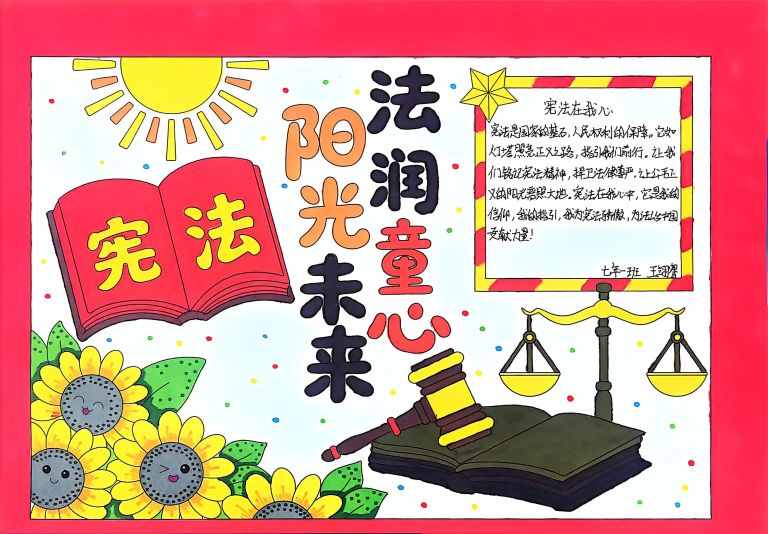 我校开展宪法主题手抄报征集活动,作品涵盖宪法知识、法治案例等内容,图文并茂、创意十足。