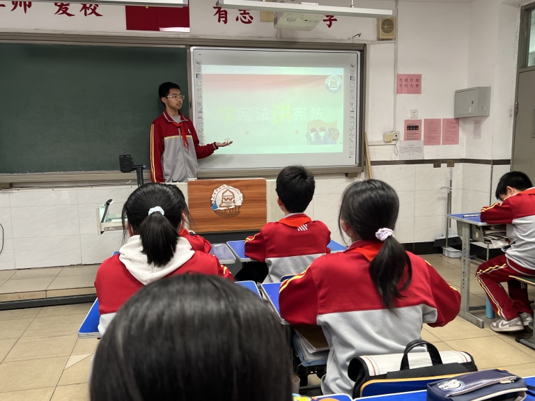 我校各班利用班会时间召开《学宪法 讲宪法》主题班会,通过法条讲解、案例分析、互动讨论等形式,向学生普及宪法概念、特征、发展历程及“母法”属性,让学生明晰宪法与普通法律的关联。